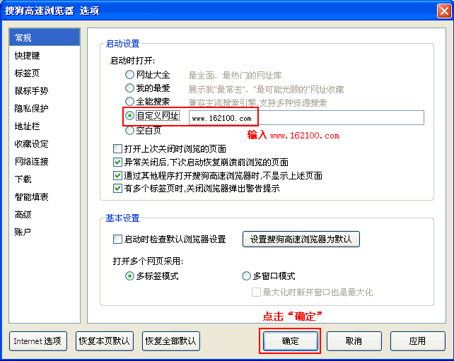 提示:若仍无法设置主页,请点击查看“主页修复”;或“把网址导航下载到桌面” 搜狗浏览器